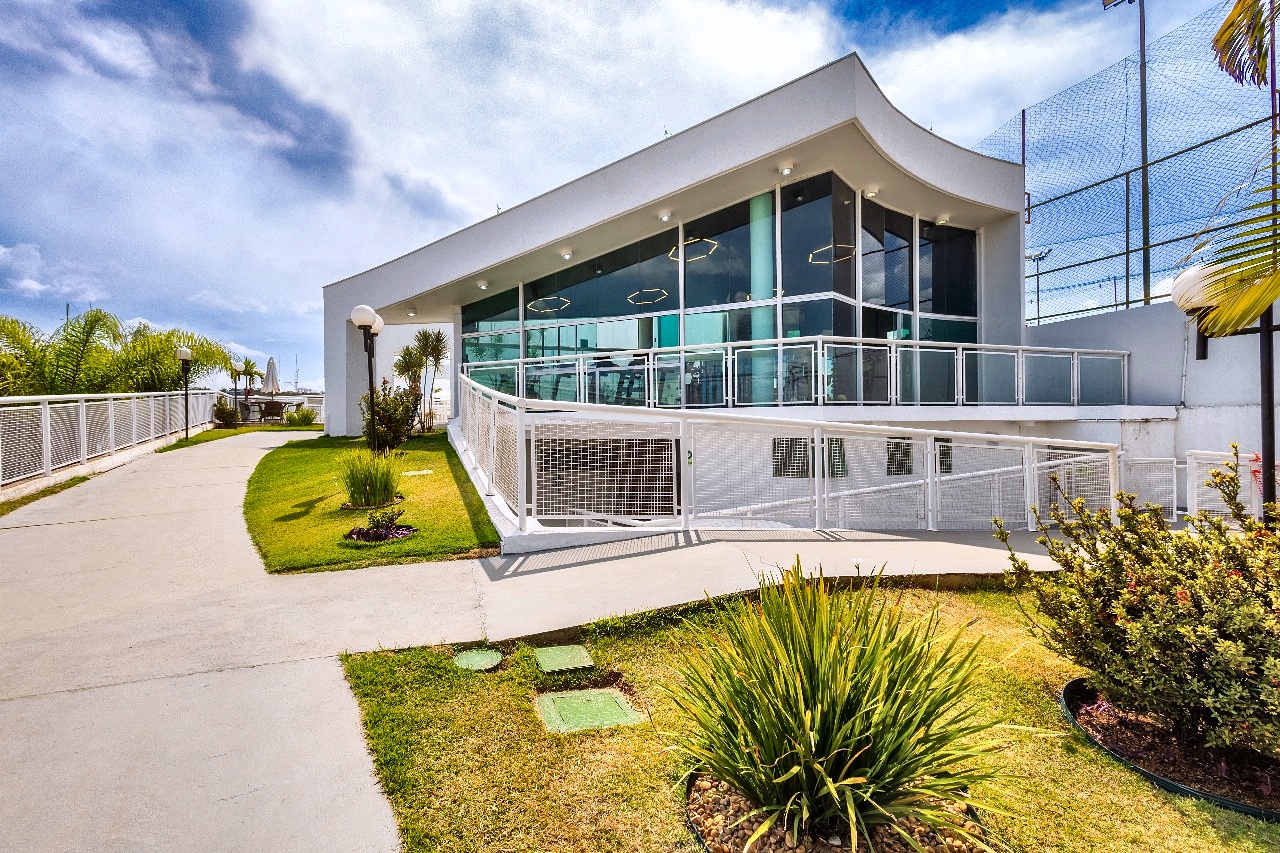 Clube de lazer com piscina.