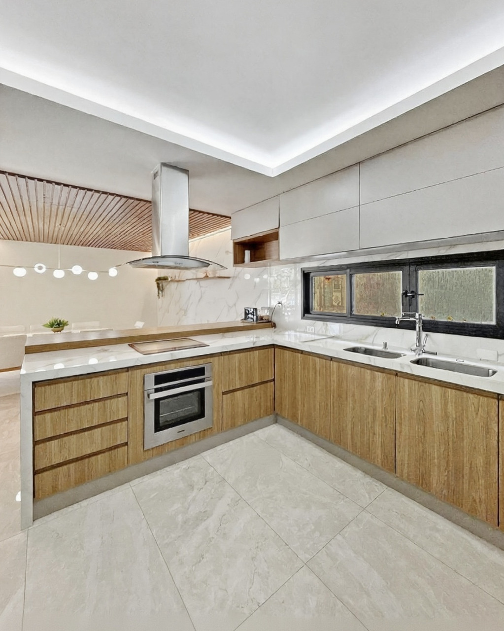 Cozinha planejada para funcionalidade diária, equipada com marcenaria sob medida e ventilação cruzada.