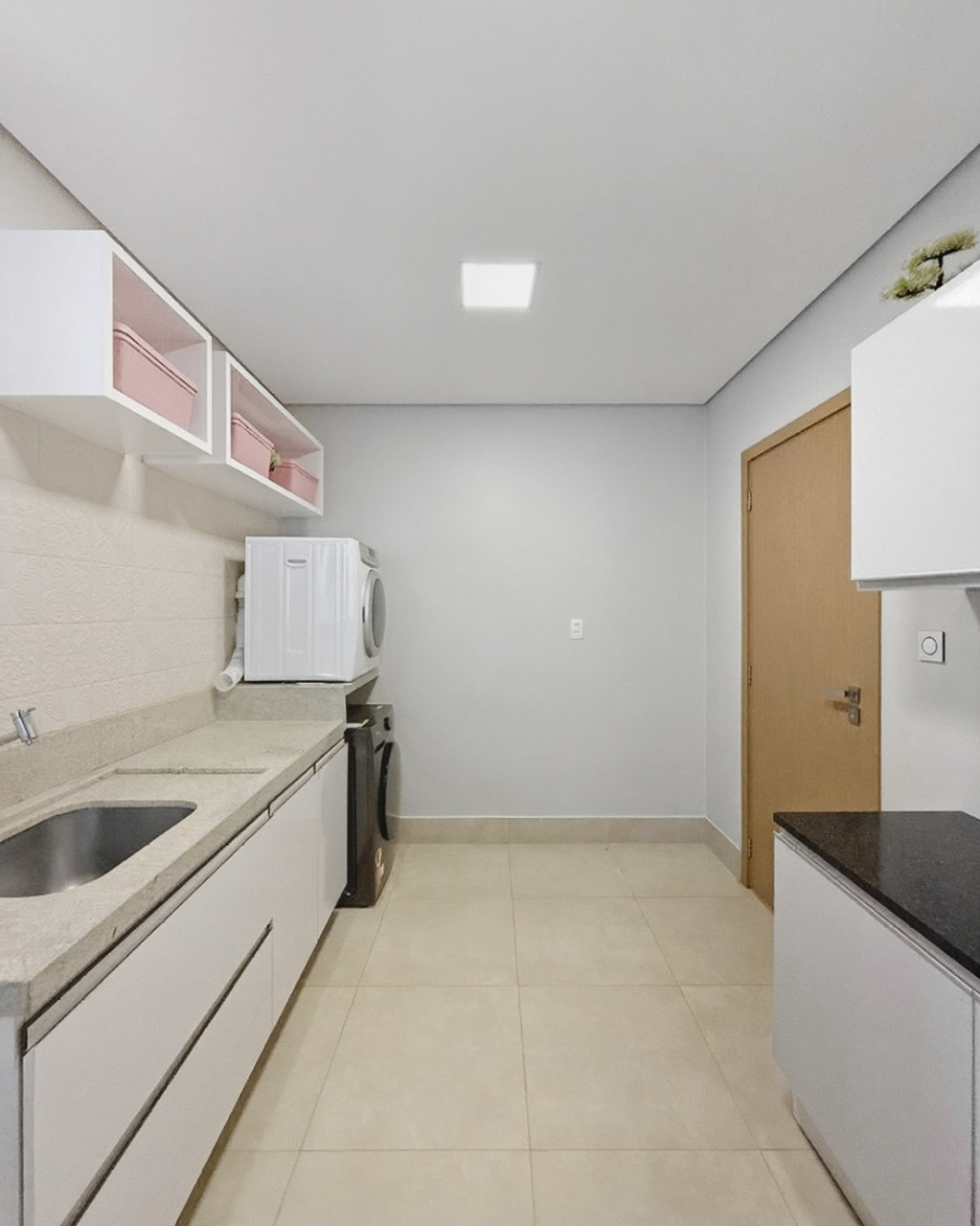 Lavanderia funcional e bem ventilada.