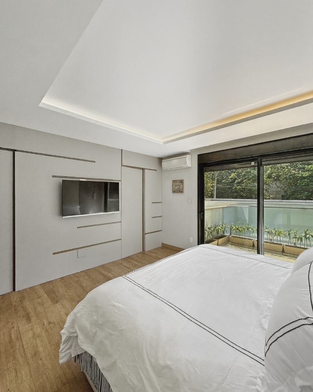 São 4 dormitórios flexíveis, configurados atualmente como 1 suíte master, 2 suites americanas e 1 escritório. A Suíte Master destaca-se pelo closet e banheiro com acabamentos nobres. As suítes americanas oferecem excelente aproveitamento de espaço e armários planejados, garantindo conforto para filhos ou hóspedes.
